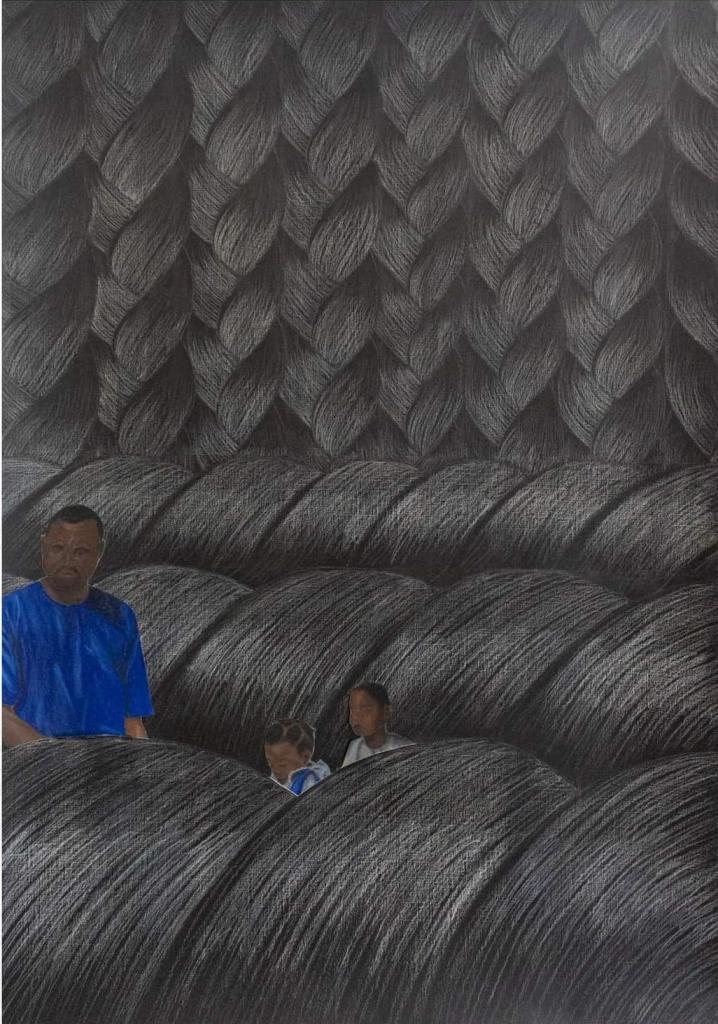 The latter depicts the African world that surrounds her daily, through photography; during her travels or from local scenes in her hometown, Abidjan, in Ivory Coast where she currently lives. Her photographic explorations further come to life with the use of colourful sewing on the print itself. A sewing element that has become a key meditative process in the production of her work.