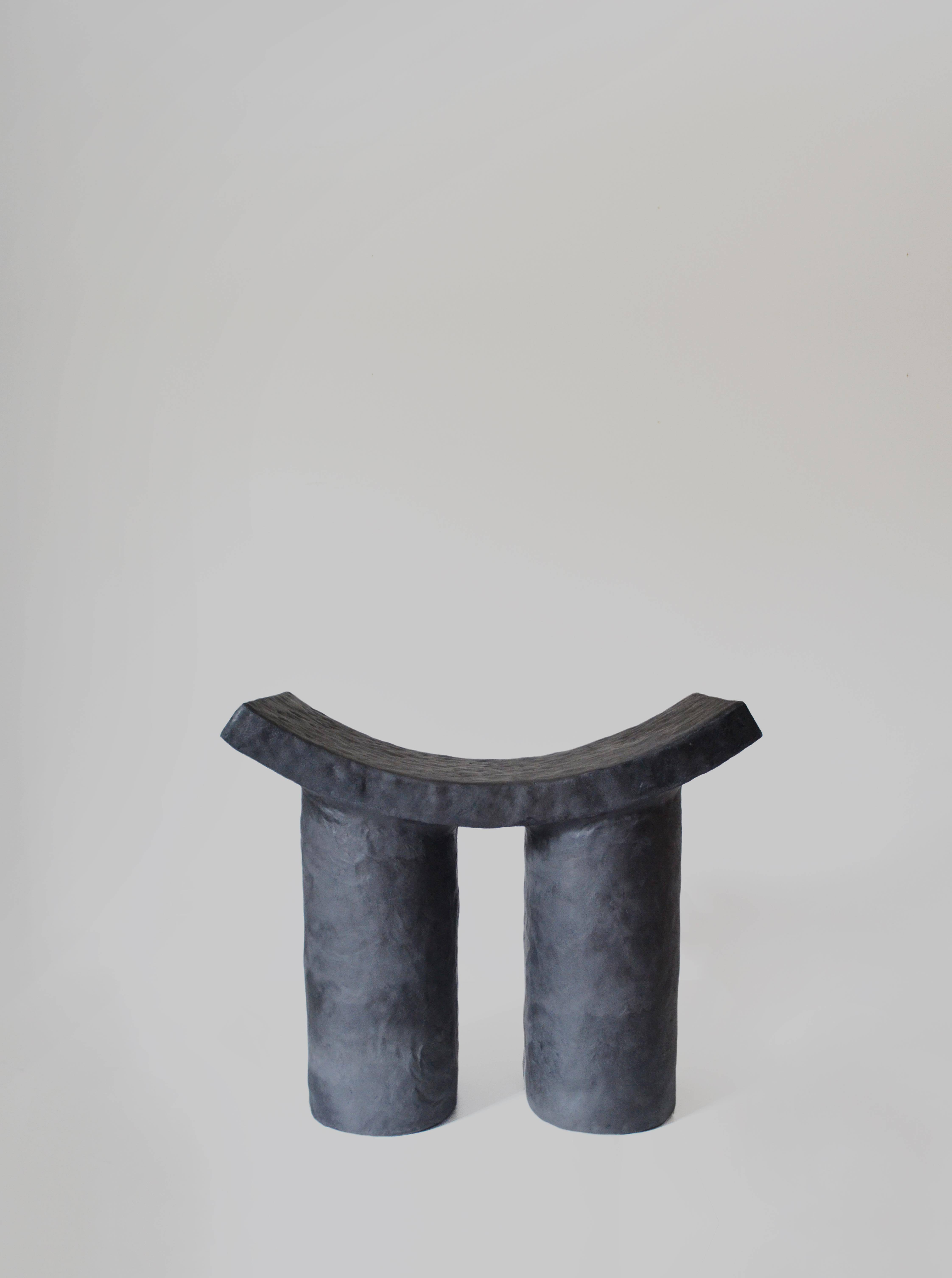 CJ: Territorio is a collection we developed for Africa Africa, an exhibition at Palazzo Litta in Milan and represents the start of a very personal and ongoing research of diversity, context and culture. Being a mixed cultured duo and having a South African heritage but being based in Milan, it was important for us not to just create an African-inspired work but to contextualize it in our current surroundings and draw a parallel between these two territories. Visually, the collection is based on a series of strong and expressive formal elements gathered in a research of traditional sub-Saharan sculpture, objects, architecture and costumes. In terms of production, easily available industrial materials are used for its construction. In this way, the rhythm of the objects of the “Territorio” collection is dictated by the rhythm of industrial production with standards of radii, curves and thickness defined by the manufacturers. The industrial putty applied to structure is a lengthy manual process which too becomes an important part of its production and spirit.