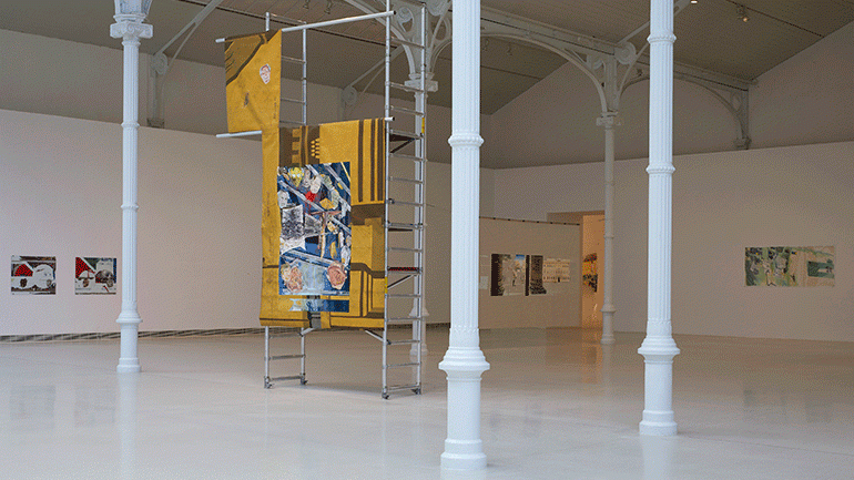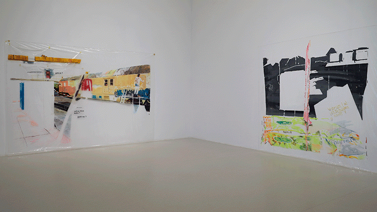 Working in cycles or combinations, Schmidt bases his paintings and painterly installations in research that combines speculative and documentary data. Situating his reconstructions of perceptual terrains in a lineage of a materialistic history painting – including artists such as Théodore Géricault, Öyvind Fahlström, Richard Hamilton, and Allan Sekula – his approach makes for a dialogue with what Verônica Tello has called “heterogeneous visual cultures and multiple temporalities.” With their point of departure in a comprehensive reflection on the visualization of cultural counter- memory and its external and internal contradictions and impossibilities, Schmidt’s abstractions, exposés and fictionalizations of history address individual and collective possibilities for agency.