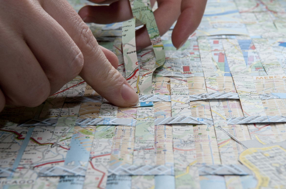 Trained as visual artist and architect, Paola Monzillo nurtures a passion for cartography. Moving mainly between collage, drawing and installation, the artist sets out to disrupt with her works the supposed neutrality of maps and images, while investigating issues linked to territory, history and representation.