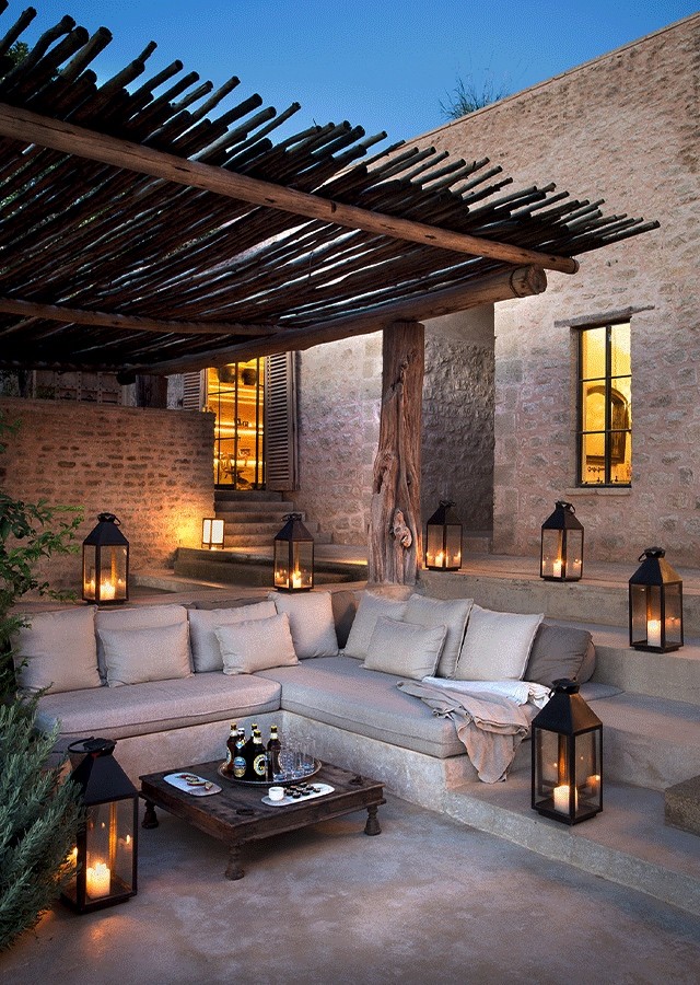 La décoratrice d’intérieur, Maira Koutsoudakis, a insufflé au projet un mélange de chic rustique inspiré de l’Afrique avec des palettes de couleurs naturelles. La maison dispose de cinq suites luxueuses et les principaux espaces communs comprennent une salle à manger et un salon au comble du raffinement, un bar lounge, une salle de sport, des baignoires en cuivre, douches intérieures et extérieures ainsi qu’un spa avec hammam qui communique avec des terrasses extérieures en paliers. Le plus excitant reste sans aucun doute l’extraordinaire couloir de nage à débordement de vingt mètres qui surplombe la savane et nous donne envie de plonger immédiatement ou simplement de nous détendre à proximité. Nous avons aussi entendu dire que parfois la piscine peut servir de point d’eau aux éléphants. La simplicité de la propriété par les matériaux utilisés et l’esprit luxueux qui s’en dégage représente un contraste saisissant face à une savane préservée et naturelle. Depuis la piscine, on aperçoit les oliviers sauvages et les acacias. Durant la saison des pluies, la valley environnante autour de laquelle est située la maison peut en saison de pluie, laisser apparaître au loin des rivières éphémères.