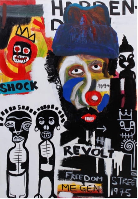 Kojo Marfo est un artiste ghanéen basé à Londres, inspiré d’une éducation entourée d’artefacts africains traditionnels. Ses œuvres vibrantes juxtaposent des visions de son enfance avec un récit actuel, dans le cadre de son désir constant de grandir et d’évoluer de façon authentique. Son travail a été exposé internationalement à Paris, Tokyo, Amsterdam, New York, Barcelone et Londres.