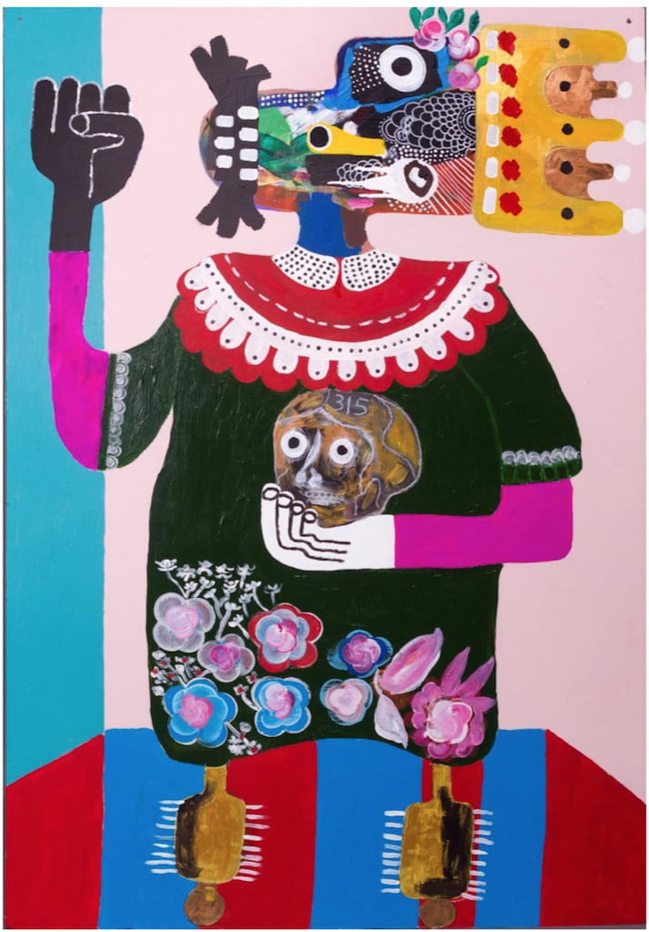 John Madu est un artiste multidisciplinaire basé à Lagos, au Nigeria, dont la pratique inclut la peinture, le collage et le design. Beaucoup de peintures de Madu expérimentent avec des coups de pinceau féroces de couleurs contrastées, souvent non réalistes, pour ses personnages. Inspiré par la culture pop, l’art contemporain africain et le surréalisme, Madu peint souvent des sujets métaphoriques s’inspirant de la littérature, des mythes et de ses propres expériences de vie.