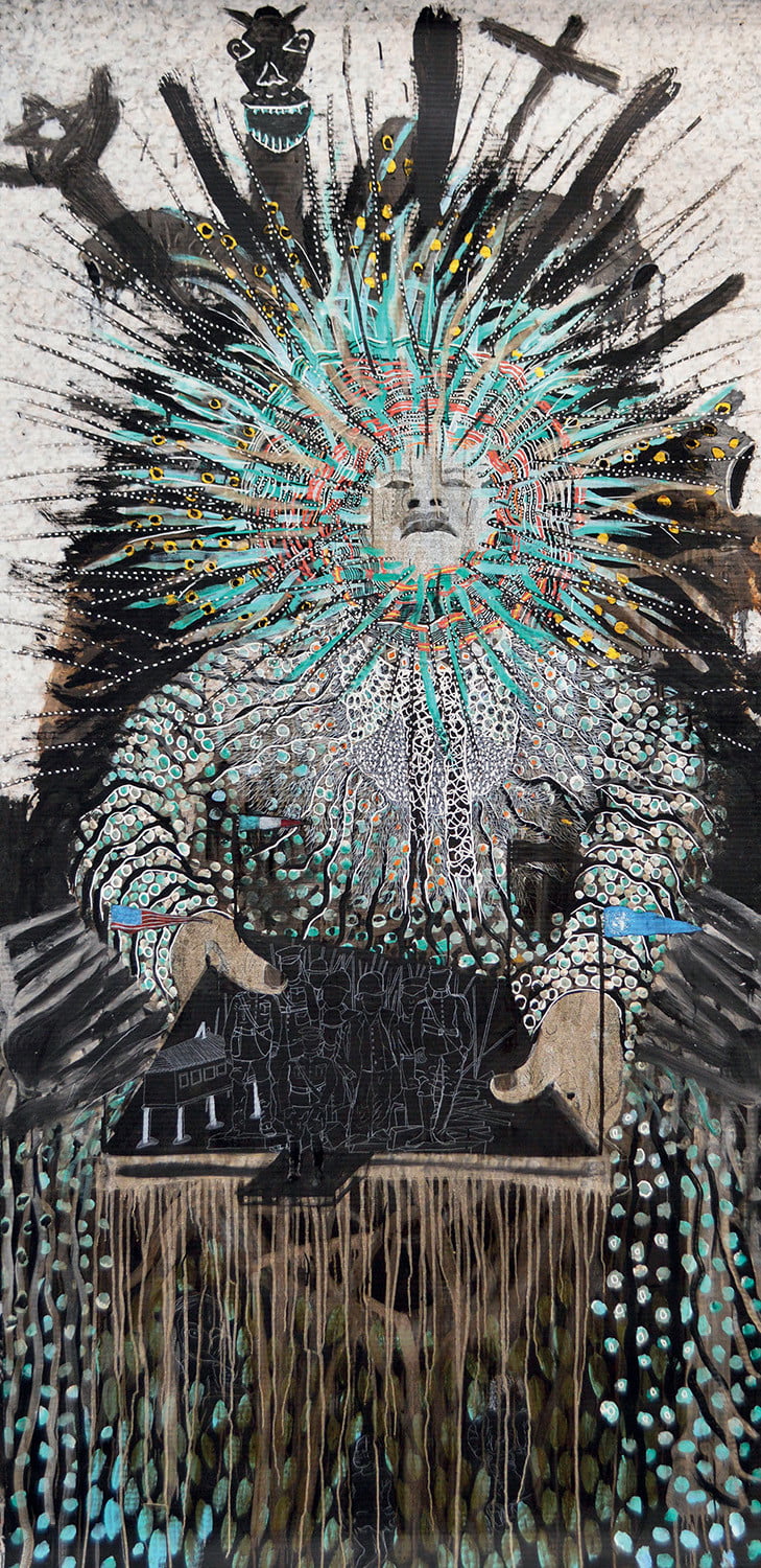 Le peintre sénégalais Omar Ba présente ses nouvelles toiles jusqu’au 27 octobre 2018, à la galerie Templon, à Paris. Ses peintures, de technique mixte, représentent le plus souvent des motifs politiques et sociaux, des jeux symboliques, des humains zoomorphes…