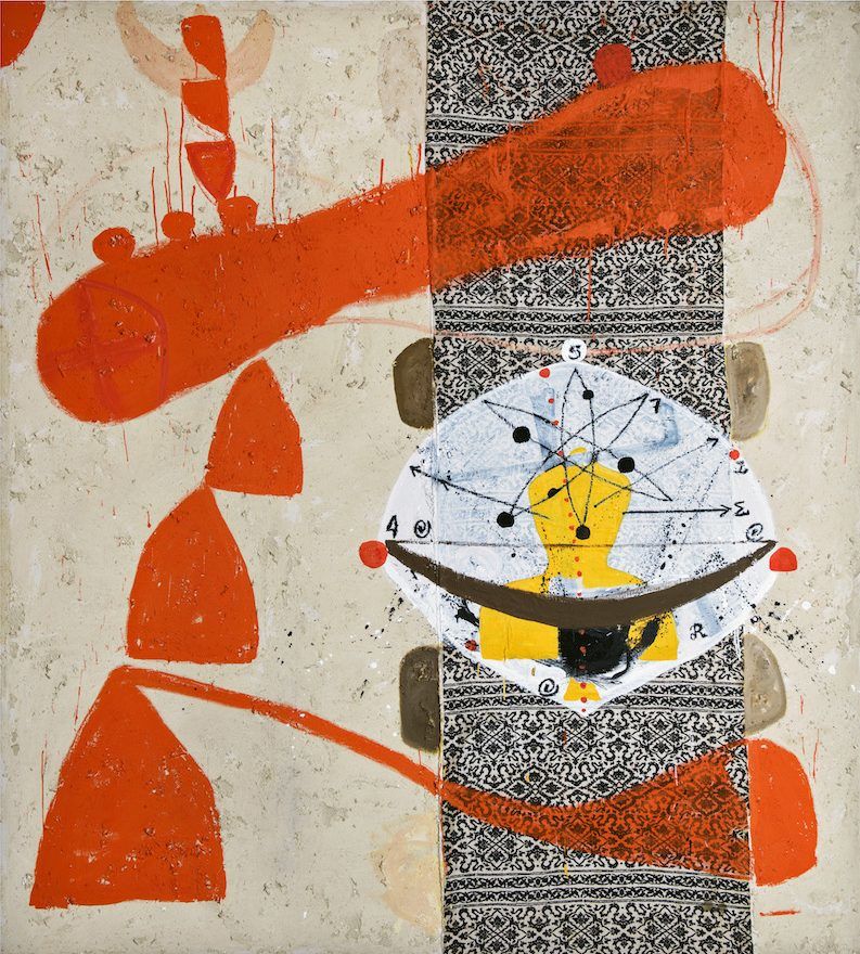 Avec des couleurs soutenues, des formes dynamiques et des idéogrammes hypnotiques, la peinture multi-média de Ouattara Watts explore des liens humains et spirituels fantasmés, et transcende les géographies et les nationalités afin de tendre vers l’universel.